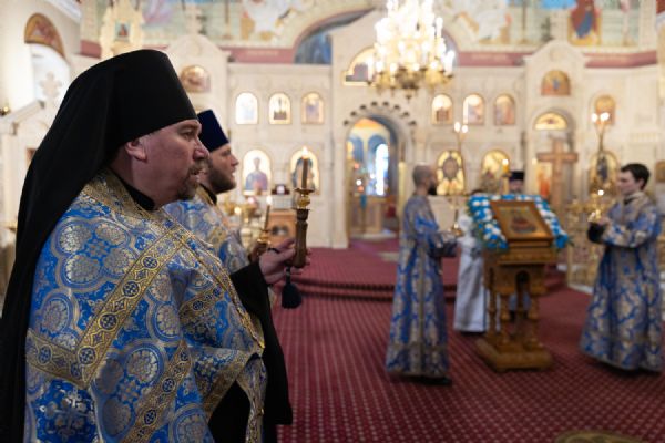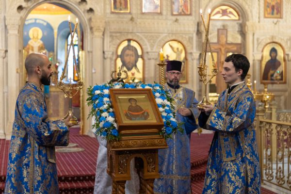Allahın Əqdəs Validəsinin Dua Örpəyi bayramı ərəfəsində yepiskop Aleksiy gecə ibadətini keçirib