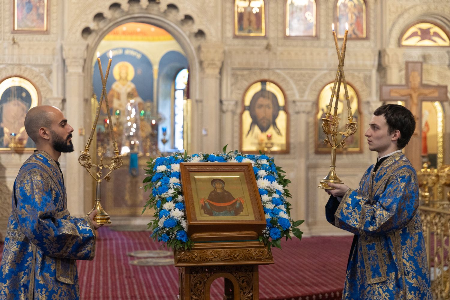 Allahın Əqdəs Validəsinin Dua Örpəyi bayramı ərəfəsində Bakı və Azərbaycanın yepiskopu Aleksiy Bakı Müqəddəs Mürr-Daşıyan Zənənlər kafedral kilsəsində gecə ibadətini keçirib. Yepiskopu kafedral kilsəsinin ruhaniləri müşayiət ediblər.