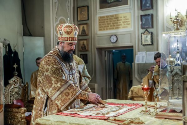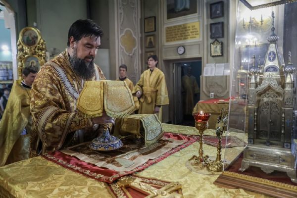 Allahın Əqdəs Validəsinin Dua Örpəyi bayramı ərəfəsində yepiskop Aleksiy gecə ibadətini keçirib