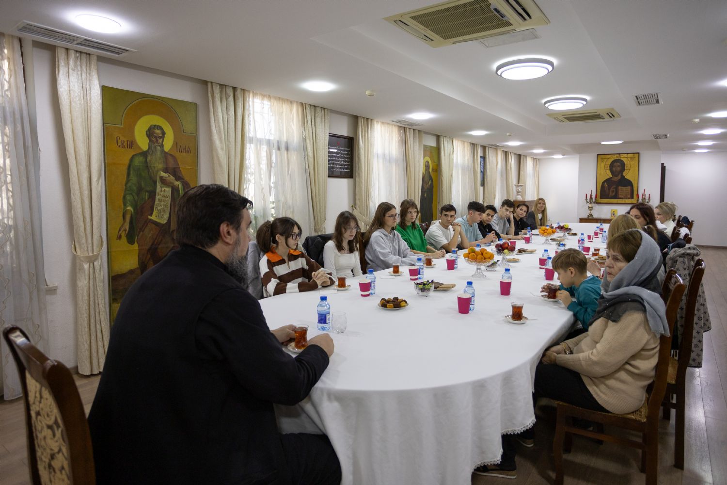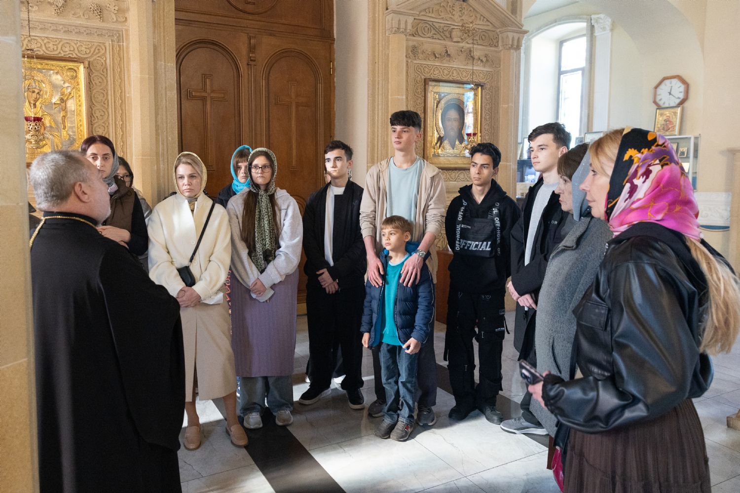 74 saylı tam orta məktəbin şagirdləri valideynlərinin müşayiəti ilə Bakı ş. Müqəddəs Mürr-Daşıyan Zənənlər kafedral kilsəsini ziyarət ediblər. Kafedralın ruhanisi, protoiyerey Andrey Bezotosnıy qonaqlar üçün kilsə haqqında ekskursiya keçirtdi. Daha sonra Bakı Yeparxiyasının Pravoslav dini-mədəni mərkəzində uşaqlarla böyüklərin Bakı və Azərbaycan yepiskopu Aleksiy ilə çay süfrəsi arxasında görüşü baş tutdu. Yepiskopla söhbət mehriban və səmimi atmosferdə keçdi, şagirdlər və onların valideynləri yepiskop Aleksiyə çoxlu sayda suallar verdilər.