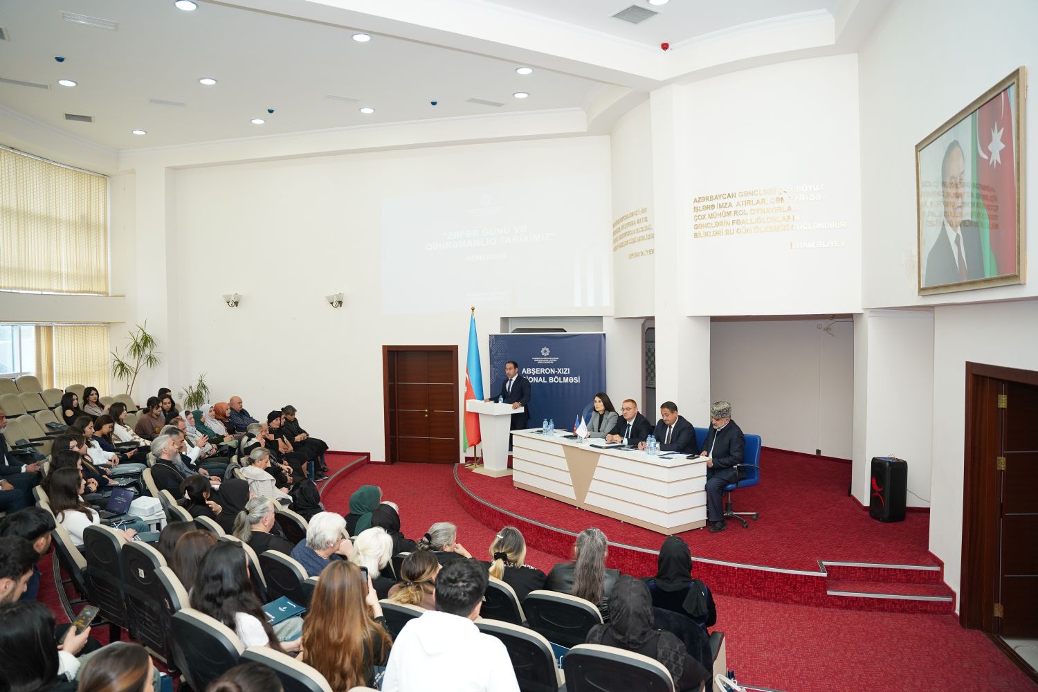Sumqayıt Şəhər Gənclər Evində Zəfər Gününə həsr olunmuş "Zəfər Günü və qəhrəmanlıq tariximiz" mövzusunda konfrans keçirilib. Tədbir Azərbaycan Respublikası Dini Qurumlarla İş üzrə Dövlət Komitəsinin regional şöbəsi tərəfindən təşkil olunub. Konfransda Dövlət Komitəsinin əməkdaşları, şəhər icra hakimiyyətinin nümayəndələri, dini liderlər, şəhid ailə üzvləri və gənclər iştirak ediblər. Tədbirdə Bakı Yeparxiyasını Sumqayıt şəhəri Müqəddəs Sarovlu Serafim kilsəsinin baş keşişi Rostislav Şahvəladov təmsil edib.