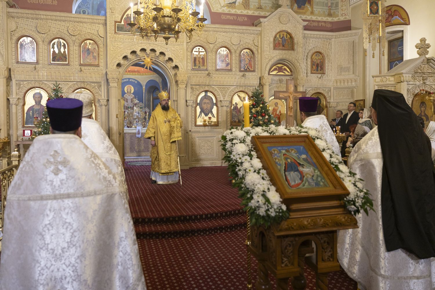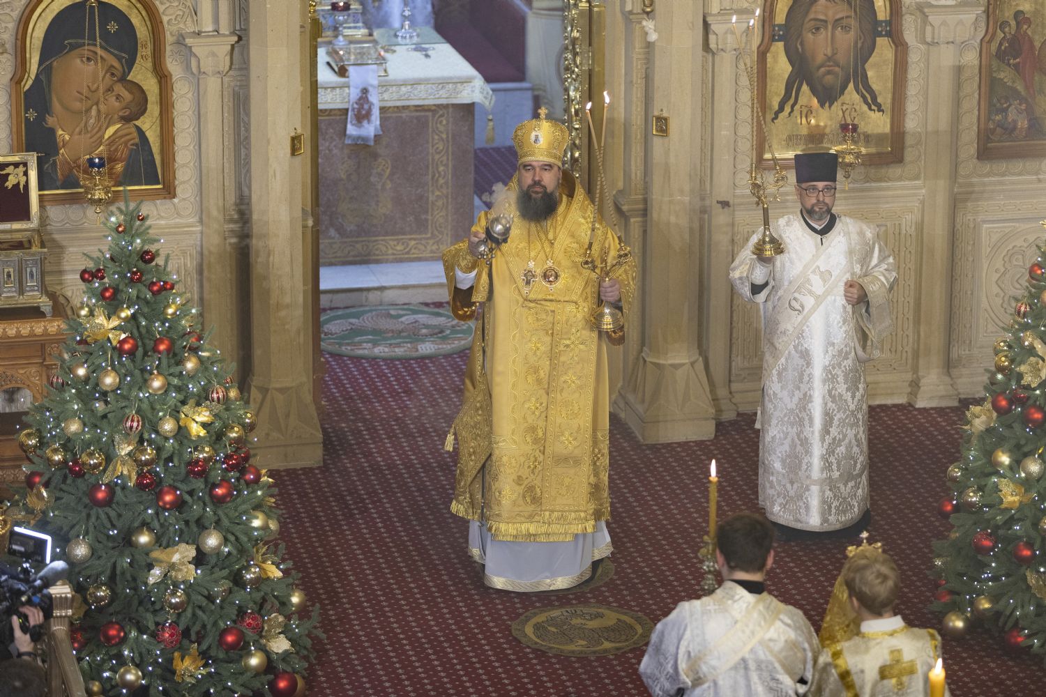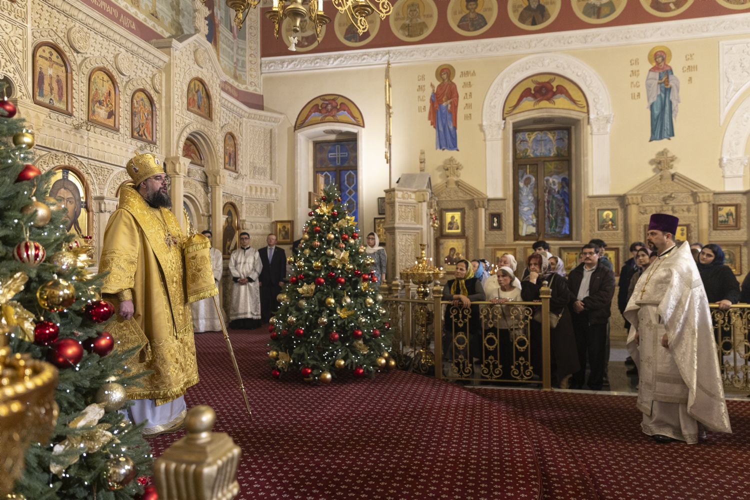 Arxiyereyi kafedral kilsəsinin ruhaniləri müşayiət edib. Kilsədə çoxlu sayda imanlılar dua edib. İbadətdə Belarus Respublikasının Fövqəladə və Səlahiyyətli səfiri Dmitriy Pineviç və Azərbaycan Respublikası Dini İcmalarla İş üzrə Dövlət Komitəsinin qeyri-islam icmaları ilə iş üzrə sektorunun müdiri Aslan Sultanov iştirak ediblər. İbadət zamanı Moskva və Bütün Rusiyanın Patriarxı Kirill müqəddəslərinin Milad müraciəti və Azərbaycan Respublikasının Prezidenti İlham Əliyevin Azərbaycanın pravoslav icmasına ünvanladığı təbrik məktubu oxunub. Vaqif Məstanovun rəhbərlik etdiyi arxiyerey xoru və Nelli İsrafilovanın rəhbərlik erdiyi kafedral xoru bir sıra bayram ilahilərini azərbaycan dilində ifa edib.