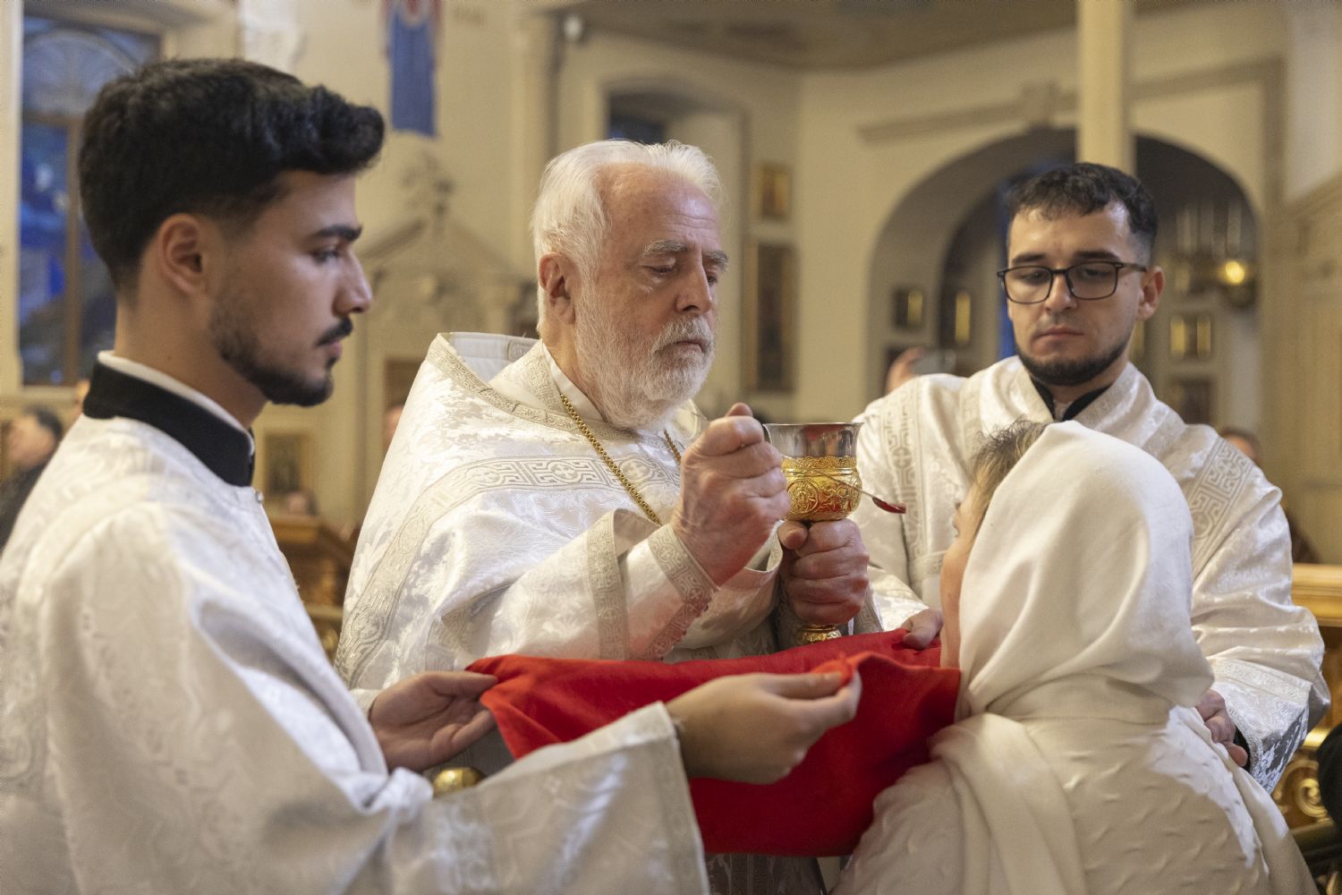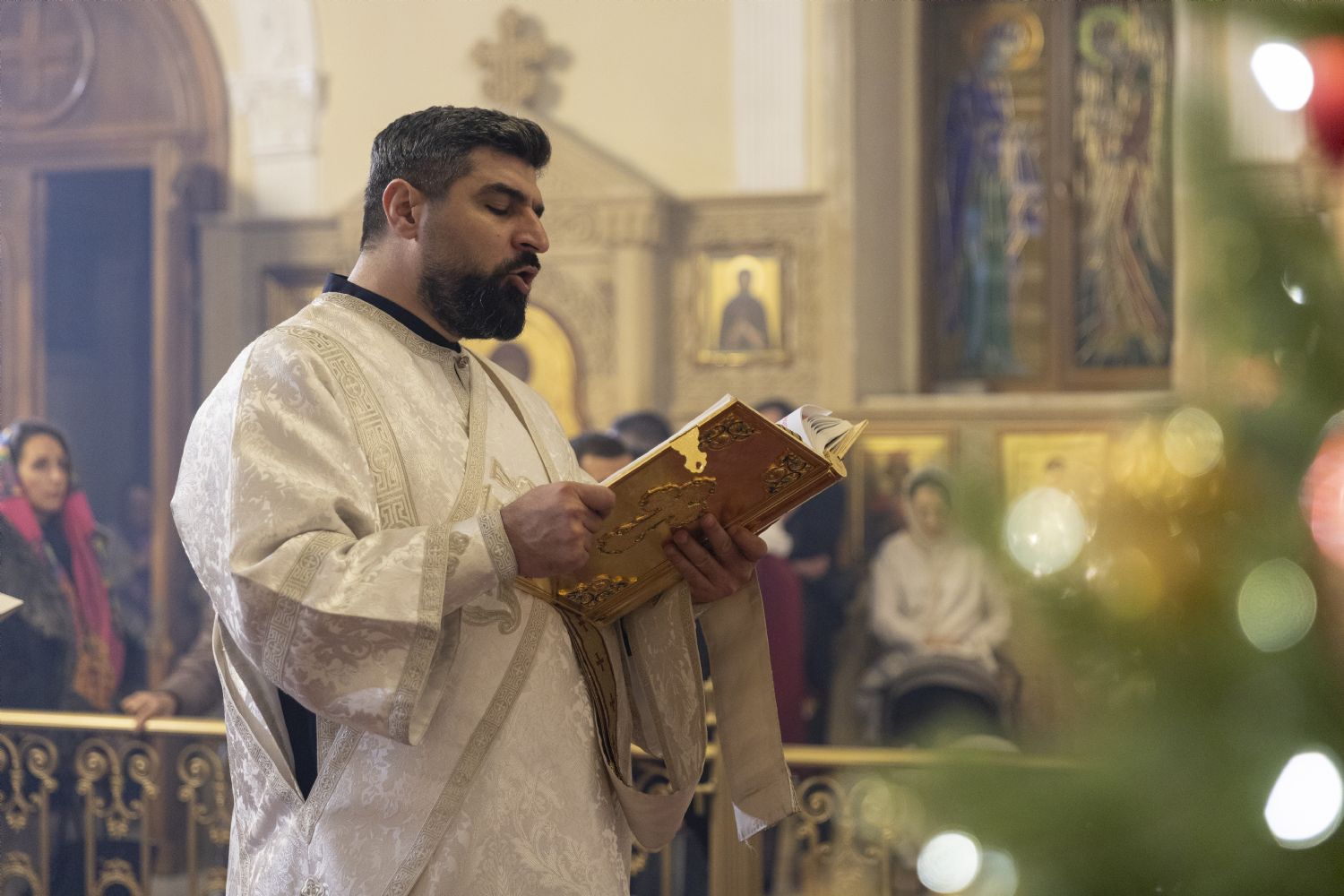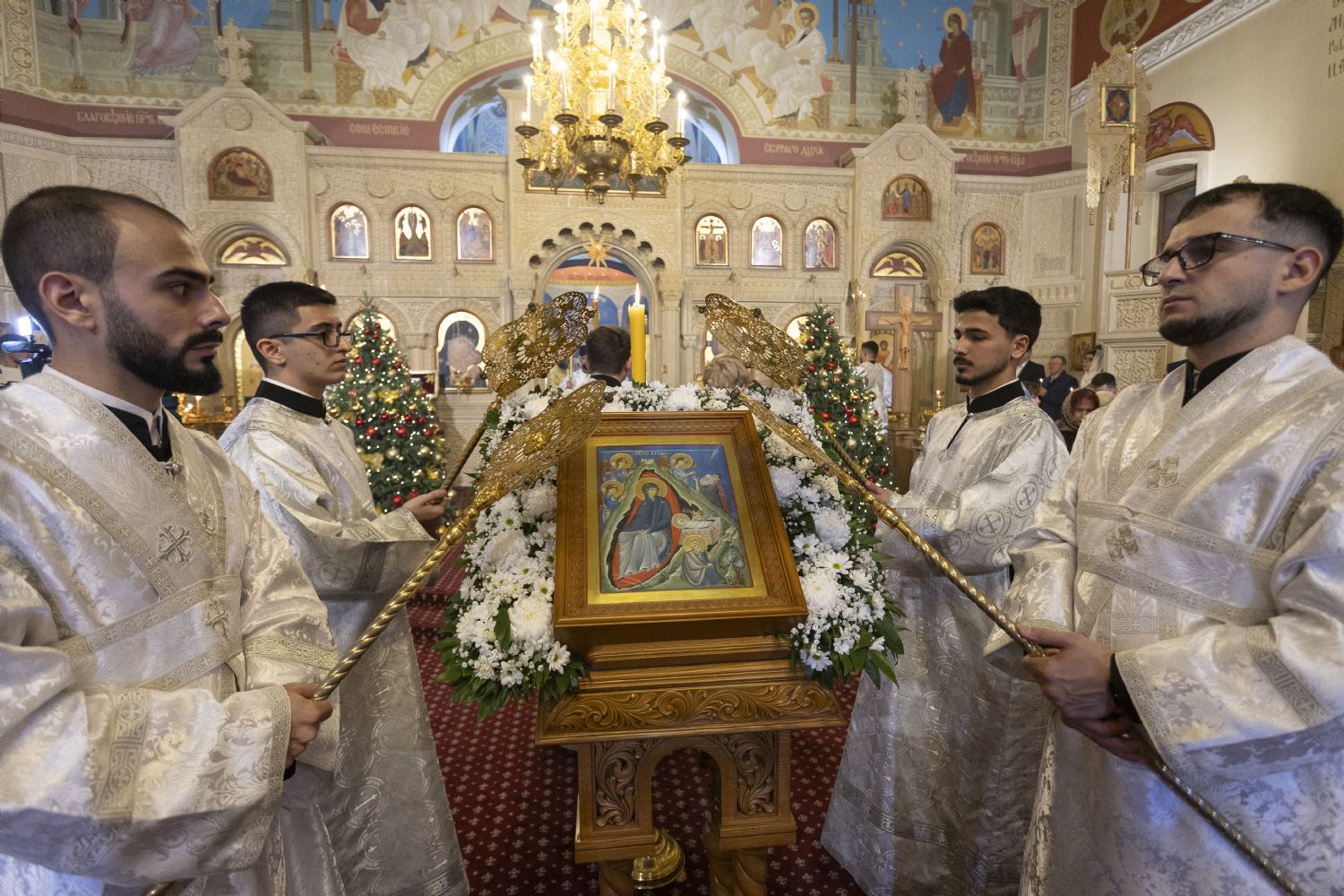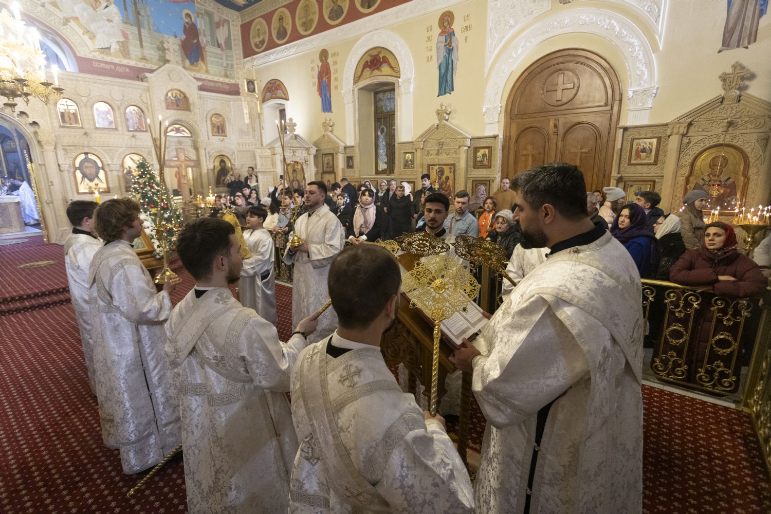 Arxiyereyi kafedral kilsəsinin ruhaniləri müşayiət edib. Kilsədə çoxlu sayda imanlılar dua edib. İbadətdə Belarus Respublikasının Fövqəladə və Səlahiyyətli səfiri Dmitriy Pineviç və Azərbaycan Respublikası Dini İcmalarla İş üzrə Dövlət Komitəsinin qeyri-islam icmaları ilə iş üzrə sektorunun müdiri Aslan Sultanov iştirak ediblər. İbadət zamanı Moskva və Bütün Rusiyanın Patriarxı Kirill müqəddəslərinin Milad müraciəti və Azərbaycan Respublikasının Prezidenti İlham Əliyevin Azərbaycanın pravoslav icmasına ünvanladığı təbrik məktubu oxunub. Vaqif Məstanovun rəhbərlik etdiyi arxiyerey xoru və Nelli İsrafilovanın rəhbərlik erdiyi kafedral xoru bir sıra bayram ilahilərini azərbaycan dilində ifa edib.