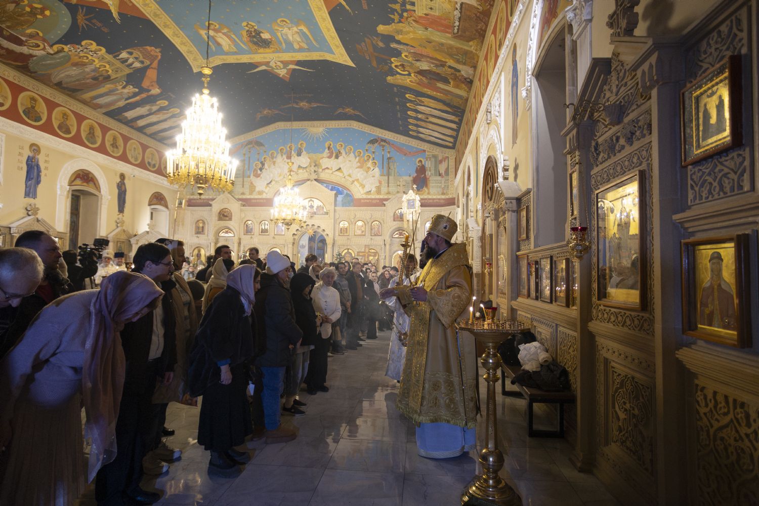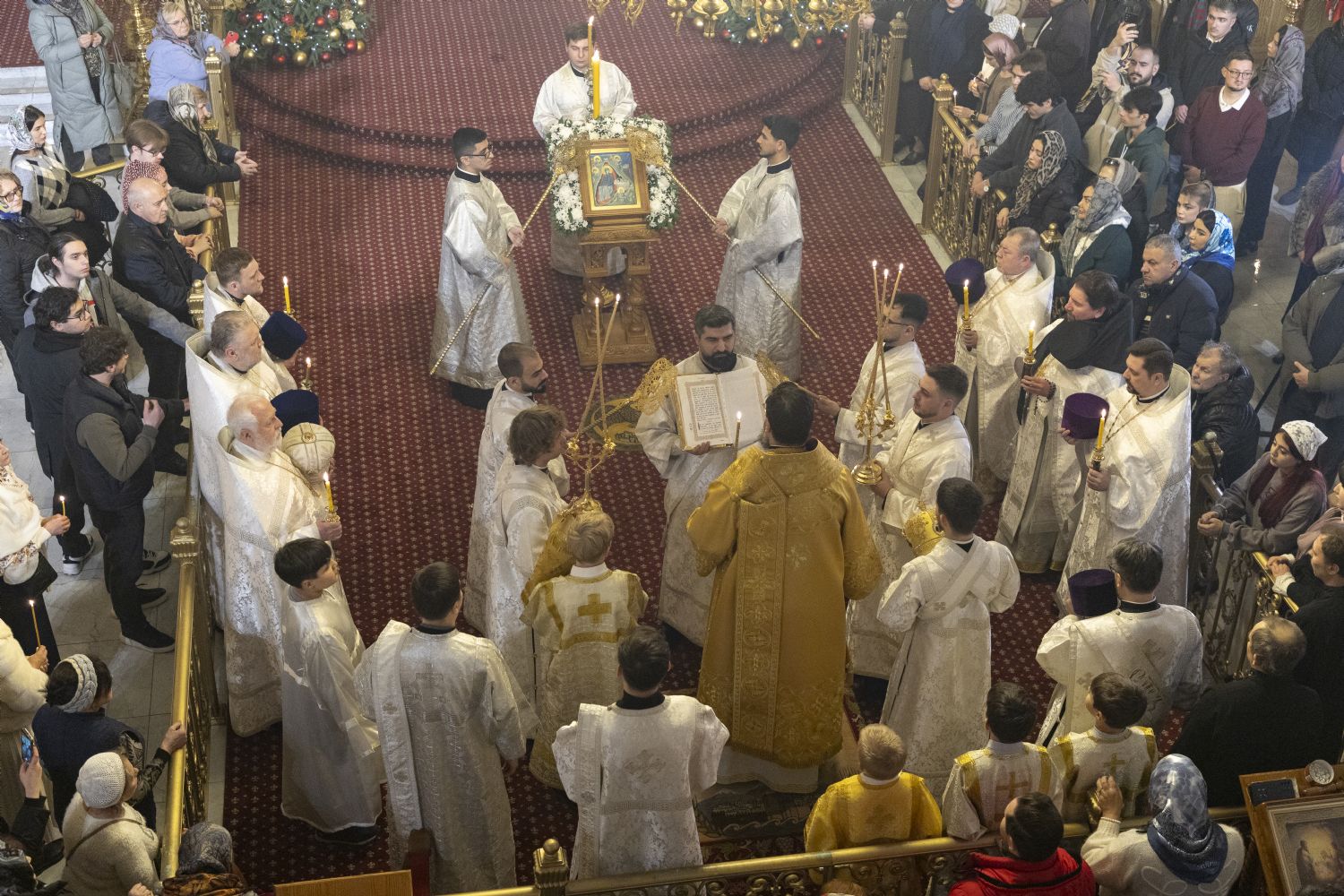 Yanvarın 7-i, axşam, Məsihin Miladı Bayramı günündə Bakı və Azərbaycan yepiskopu Aleksiy, Bakı şəhəri Müqəddəs Mürr-Daşıyan Zənənlər kafedral kilsəsində böyük axşam ibadətini keçirib. Arxiyereyi kafedral