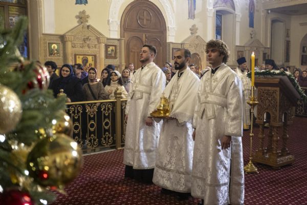 Milad Ərəfəsi, Bakı və Azərbaycan yepiskopu Aleksiy, Bakı şəhəri Müqəddəs Mürr-Daşıyan Zənənlər kafedral kilsəsində İlahi Liturgiya keçirib. Arxiyereyi kafedral kilsəsinin ruhaniləri müşayiət ediblər.