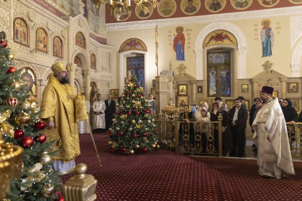Milad Bayramı günündə yepiskop Aleksiy kafedral kilsədə İlahi Liturgiya keçirib