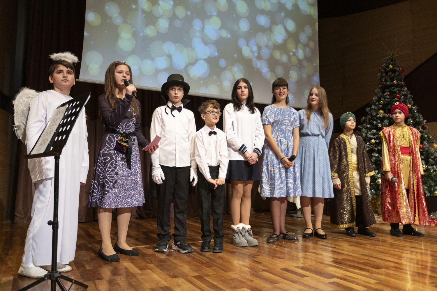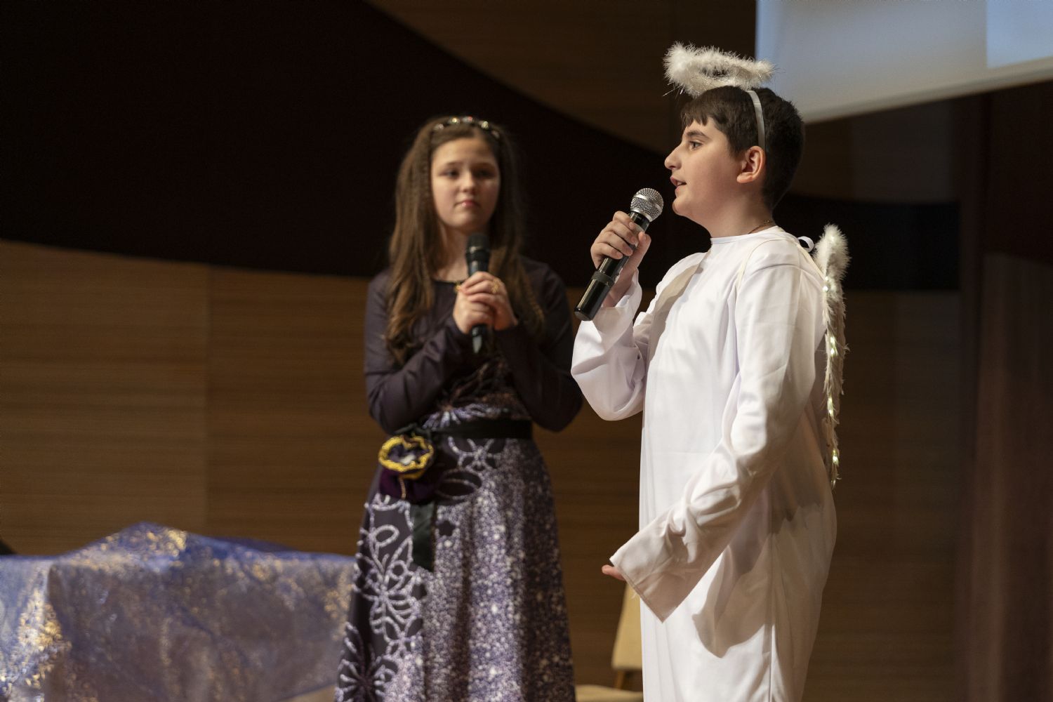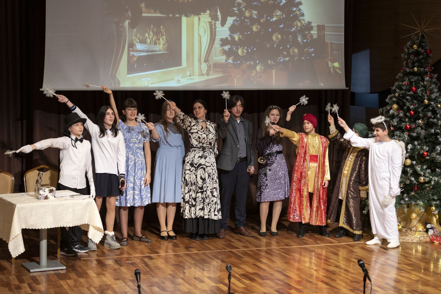 Müqəddəs Mürr-Daşıyan Zənənlər kafedral kilsəsinin "Qanadlar" bazar günü məktəbinin şagirdləri "Məsihin Miladının İncil hadisələri" adlı kukla tamaşası ilə çıxış etdilər, həmçinin şeirlər və ilahilər oxudular. Tamaşalara müəllimlər Zemfira Zeynalova və Nelli İsrafilova rəhbərlik ediblər, tamaşa üçün kuklaları isə Tatyana Şahvəladova hazırladı. Ali-Mələk Mikayıl kilsəsinin bazar günü məktəbinin şagirdləri məktəbin müəllimi Kristina Əfəndiyevanın rəhbərliyi altında gözəl musiqili-ədəbi kompozisiya hazırladılar. "İstedad nədir?" adlı səhnə miniatürünü və nəğmələri Larisa Kərimovanın rəhbərlik etdiyi Allahın Əqdəs Validəsinin Mövludu kilsəsinin bazar günü məktəbinin şagirdləri tamaşaçılara təqdim etdilər. Elen Nağıyevanın rəqs qrupu da şənlikdə iştirak edib.