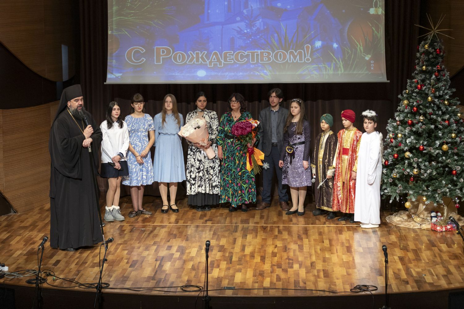 Bakı və Azərbaycan yepiskopu Aleksiy Muğam Mərkəzinin zalında toplaşanlara Məsihin Miladı münasibətilə təbriklərini çatdırdı. Yepiskop Aleksiy mübarək Milad günlərində tamaşaçılara bayram əhval-ruhiyyəsi bəxş etdiklərinə görə gənc artistlərə təşəkkürünü bildirdi.
