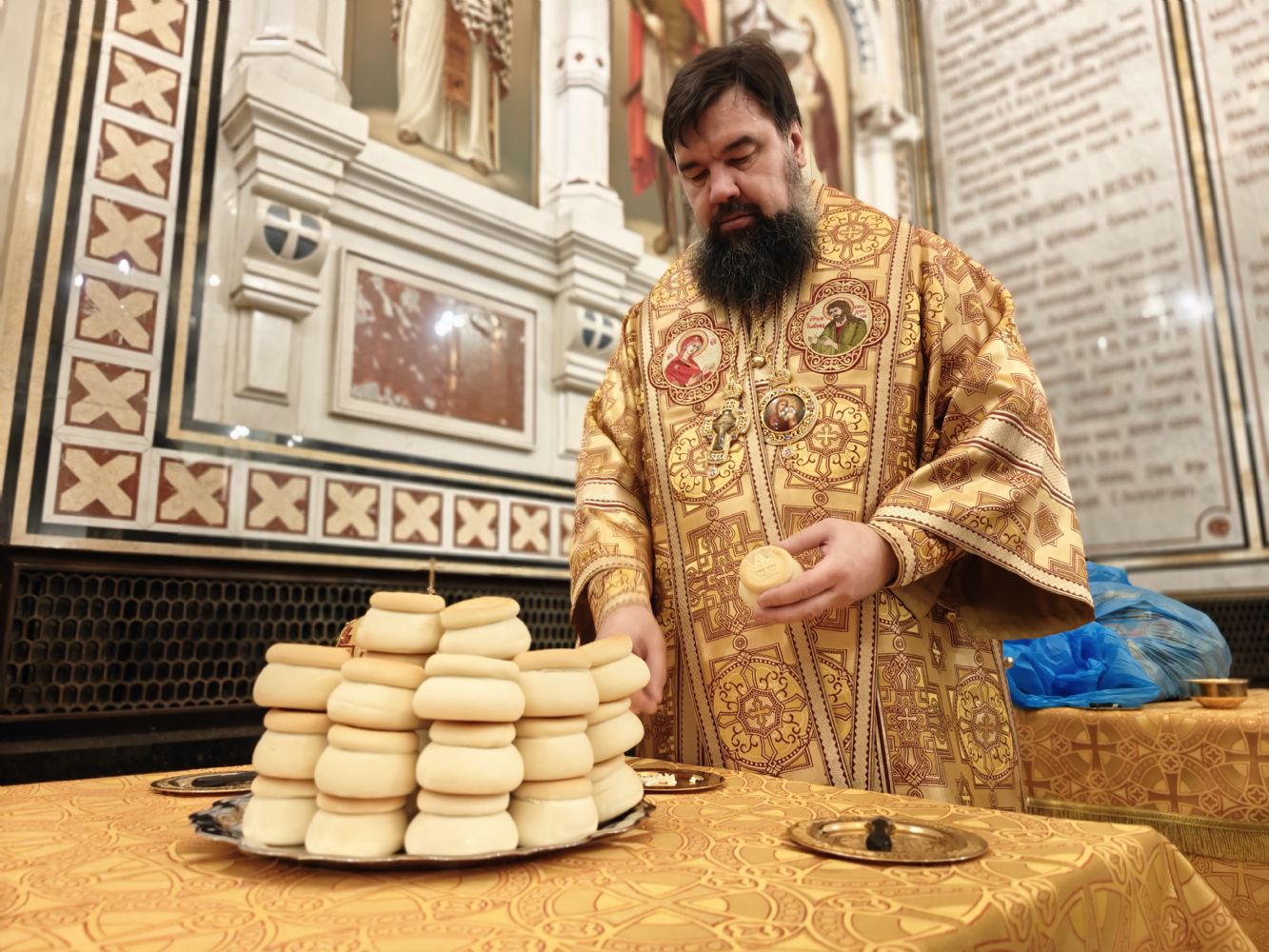 Rəbbin Vəftizi bayramının ərəfəsi günü Bakı və Azərbaycan yepiskopu Aleksiy Bakı şəhəri Müqəddəs Mürr-Daşıyan Zənənlər kafedral kilsəsində İlahi Liturgiya, böyük axşam duası və suyun böyük təqdis