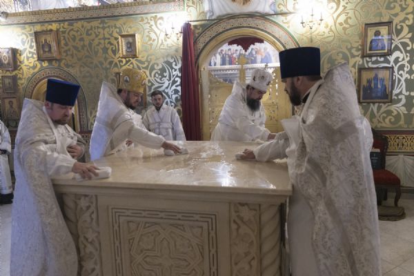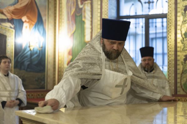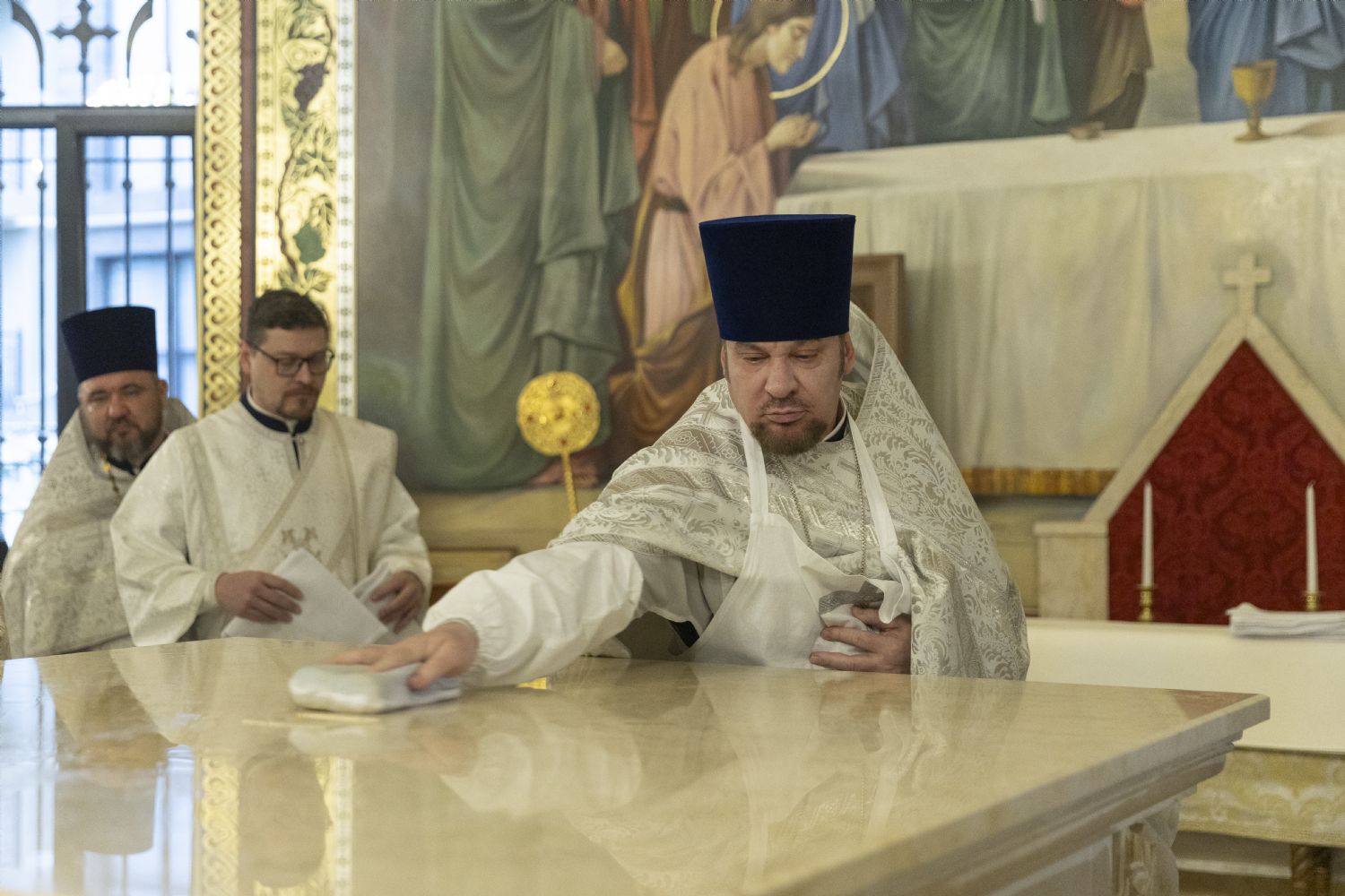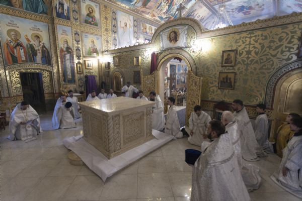 İbadətdən sonra yepiskop Aleksiy Bakı yeparxiyasının həyatında bu əlamətdar hadisə münasibətilə hamını təbrik etmiş və məbədin bu gözəl şəkildə yenilənməsinin Azərbaycan Respublikasının Prezidenti İlham Əliyevin diqqət və dəstəyi sayəsində mümkün olduğunu xüsusi vurğulamışdır.