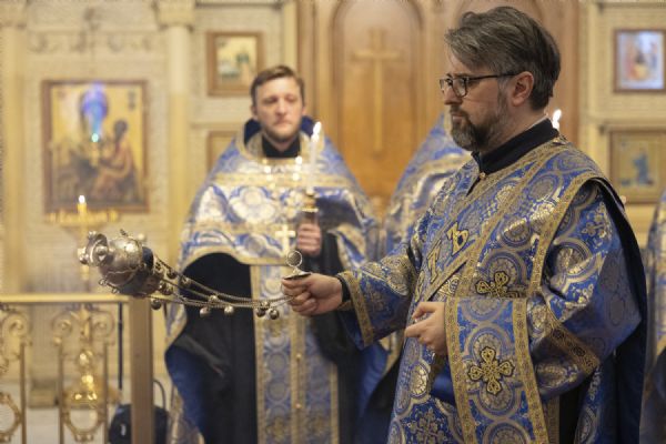 Böyük Orucun 5-ci həftəsinin şənbə günü — Allahın Validəsinə Tərif (Akafist Şənbəsi) bayramı ərəfəsində Bakı və Azərbaycan yepiskopu Aleksiy Bakı şəhəri Müqəddəs Mürr-Daşıyan Zənənlər kafedral kilsəsində akafistin oxunuşu ilə səhər ibadətini keçirib.