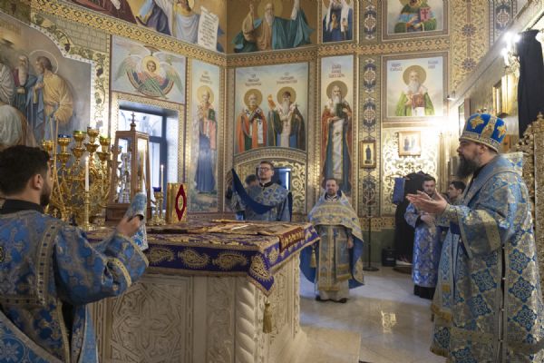 Böyük Orucun 5-ci həftəsinin şənbə günü — Allahın Validəsinə Tərif (Akafist Şənbəsi) bayramı ərəfəsində Bakı və Azərbaycan yepiskopu Aleksiy Bakı şəhəri Müqəddəs Mürr-Daşıyan Zənənlər kafedral kilsəsində