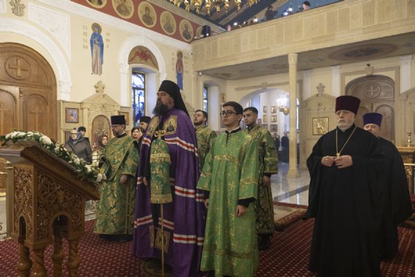 12Lazar şənbəsi günü yepiskop Aleksiy kafedral kilsəsində İlahi Liturgiyaya başçılıq edib
