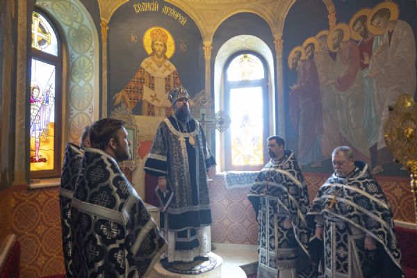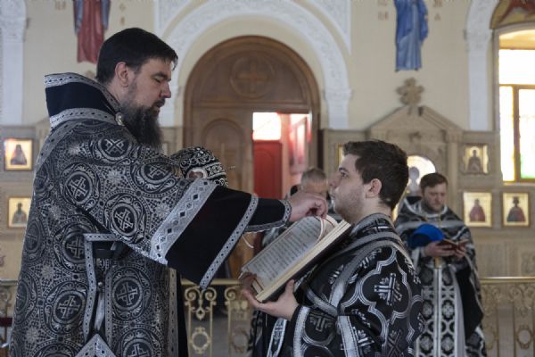 Müqəddəs Çərşənbə günündə yepiskop Aleksiy kafedral kilsəsində Əvvəlcədən Təqdis edilmiş Ənamlar Liturgiyasını keçirib