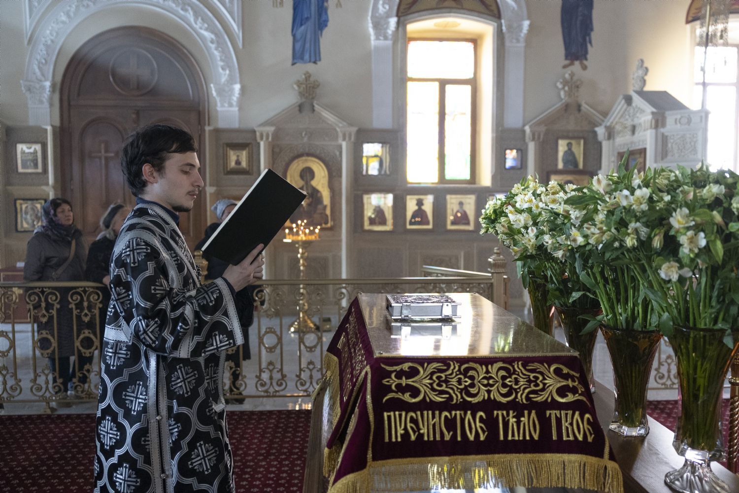 Aprelin 9-da axşam, Müqəddəs Həftənin Cümə günü ərəfəsində Bakı və Azərbaycan yepiskopu Aleksiy Bakı şəhəri Müqəddəs Mürr-Daşıyan Zənənlər kafedral kilsəsində Rəbbimiz İsa Məsihin Müqəddəs Əzablarının 12