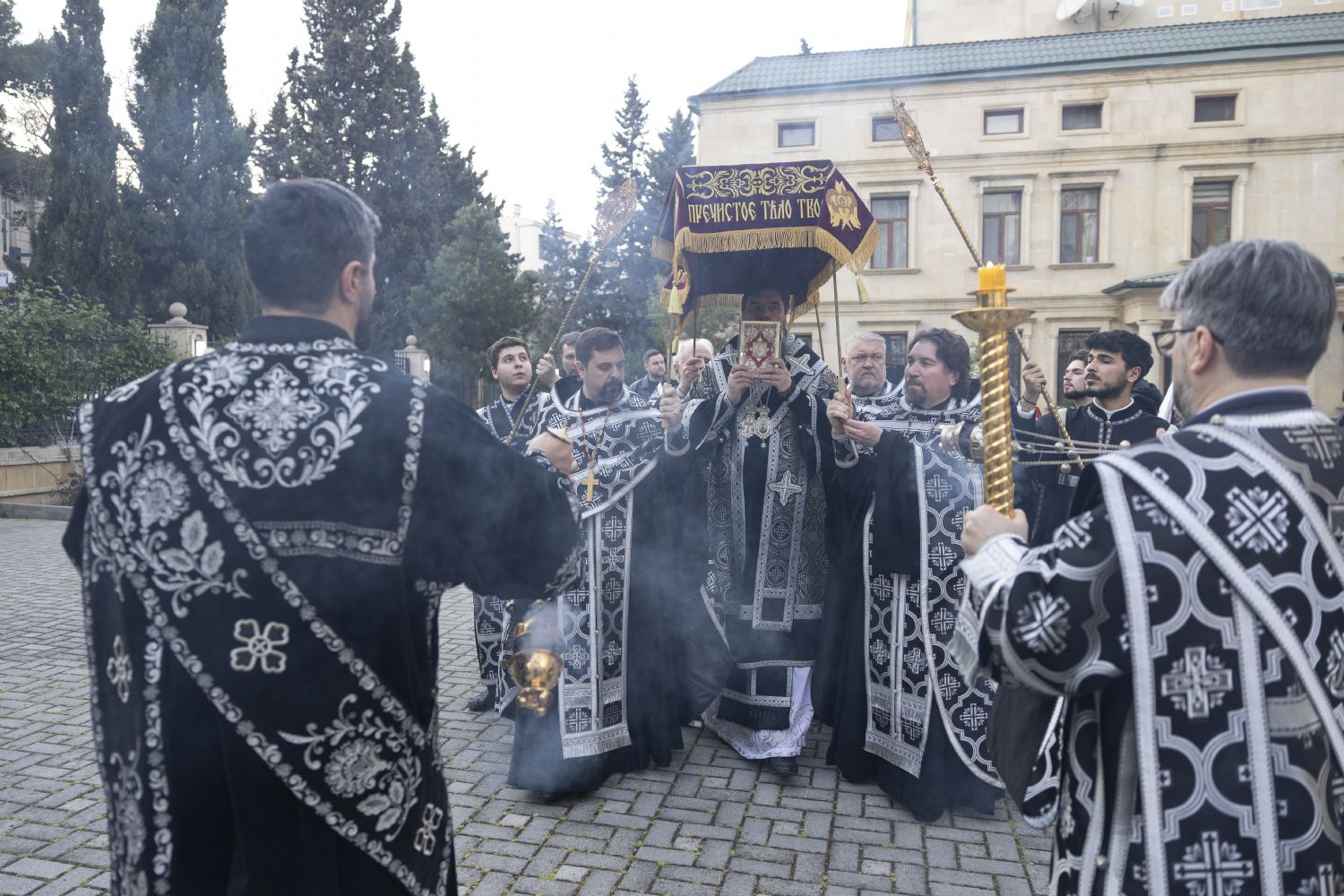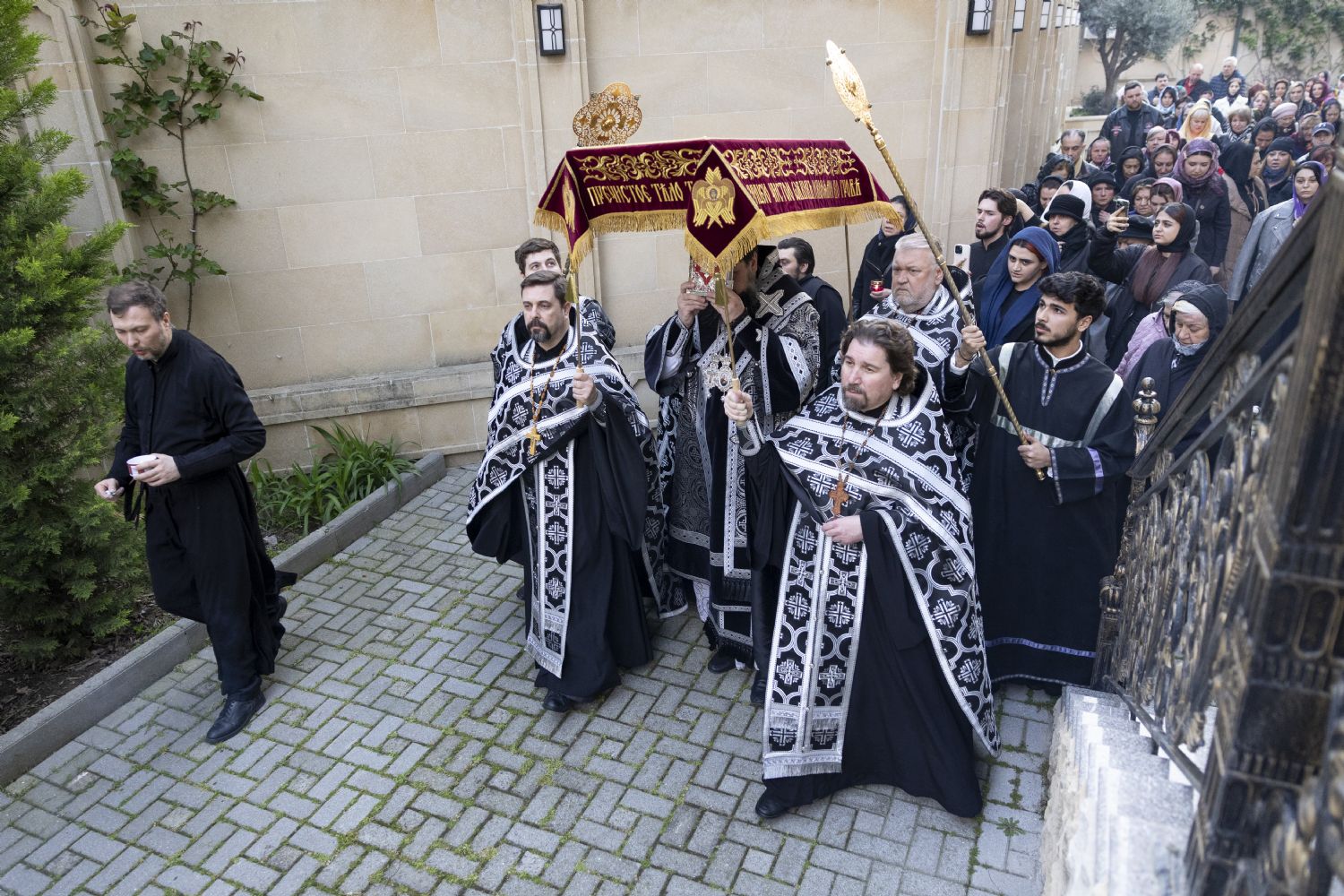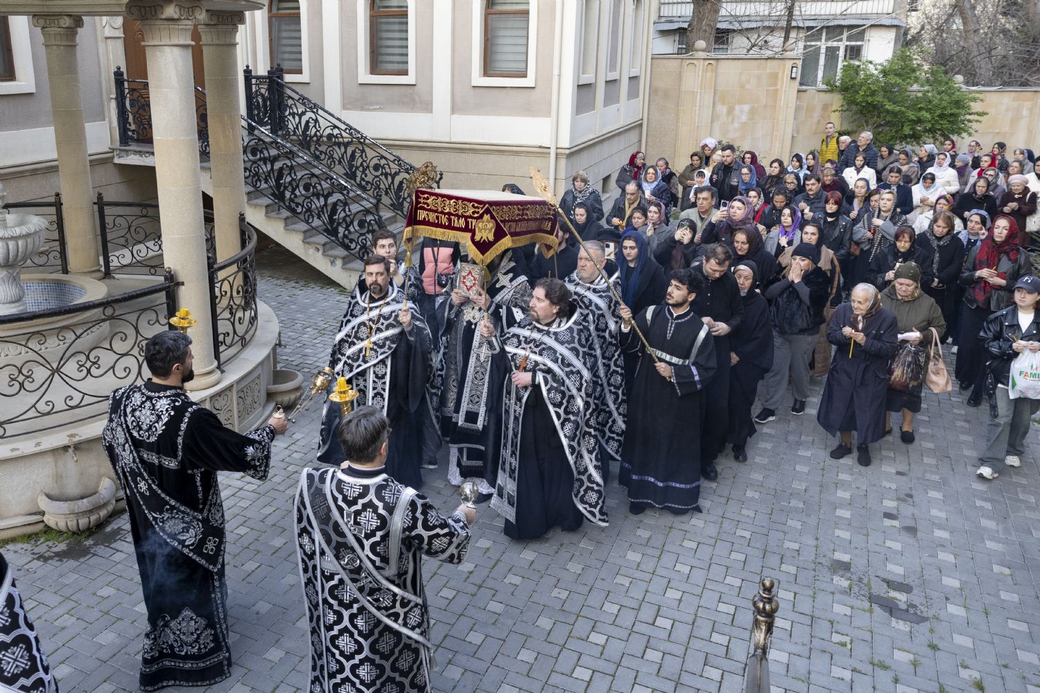 Müqəddəs Şənbə günü ərəfəsində Bakı və Azərbaycan yepiskopu Aleksiy Bakı şəhəri Müqəddəs Mürr-Daşıyan Zənənlər kafedral kilsəsində Rəbbimiz İsa Məsihin Kəfəninin dəfn edilməsi ilə səhər ibadətini keçirib. Kilsənin ətrafında Kəfənlə dini yürüş keçirildi, bundan sonra imanlılar üzərində Məsihin dəfninin təsviri olan Kəfənə ehtiram göstərə bildilər.