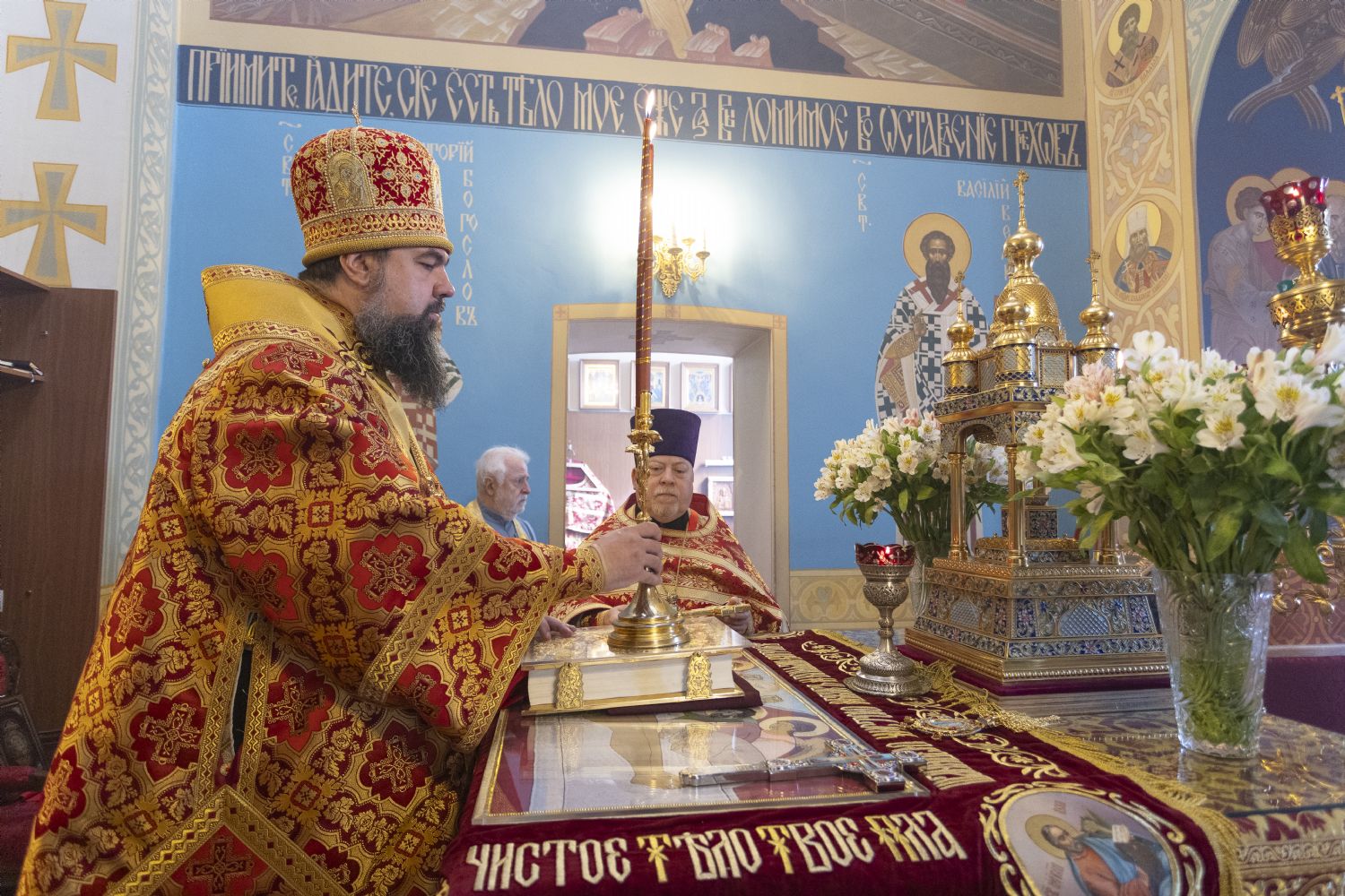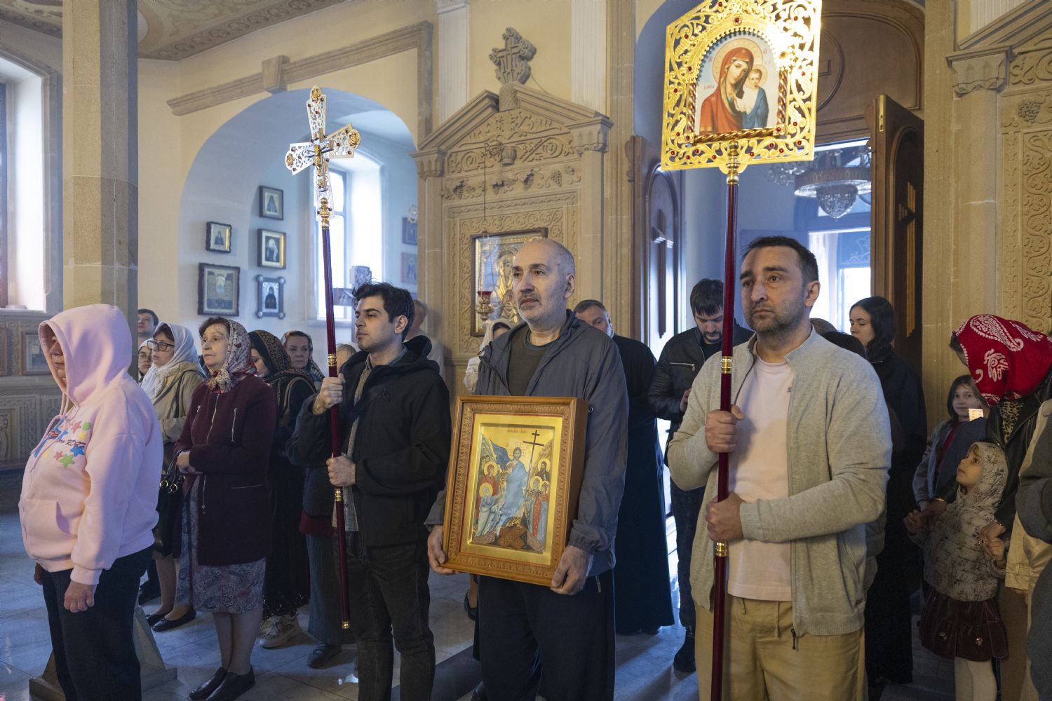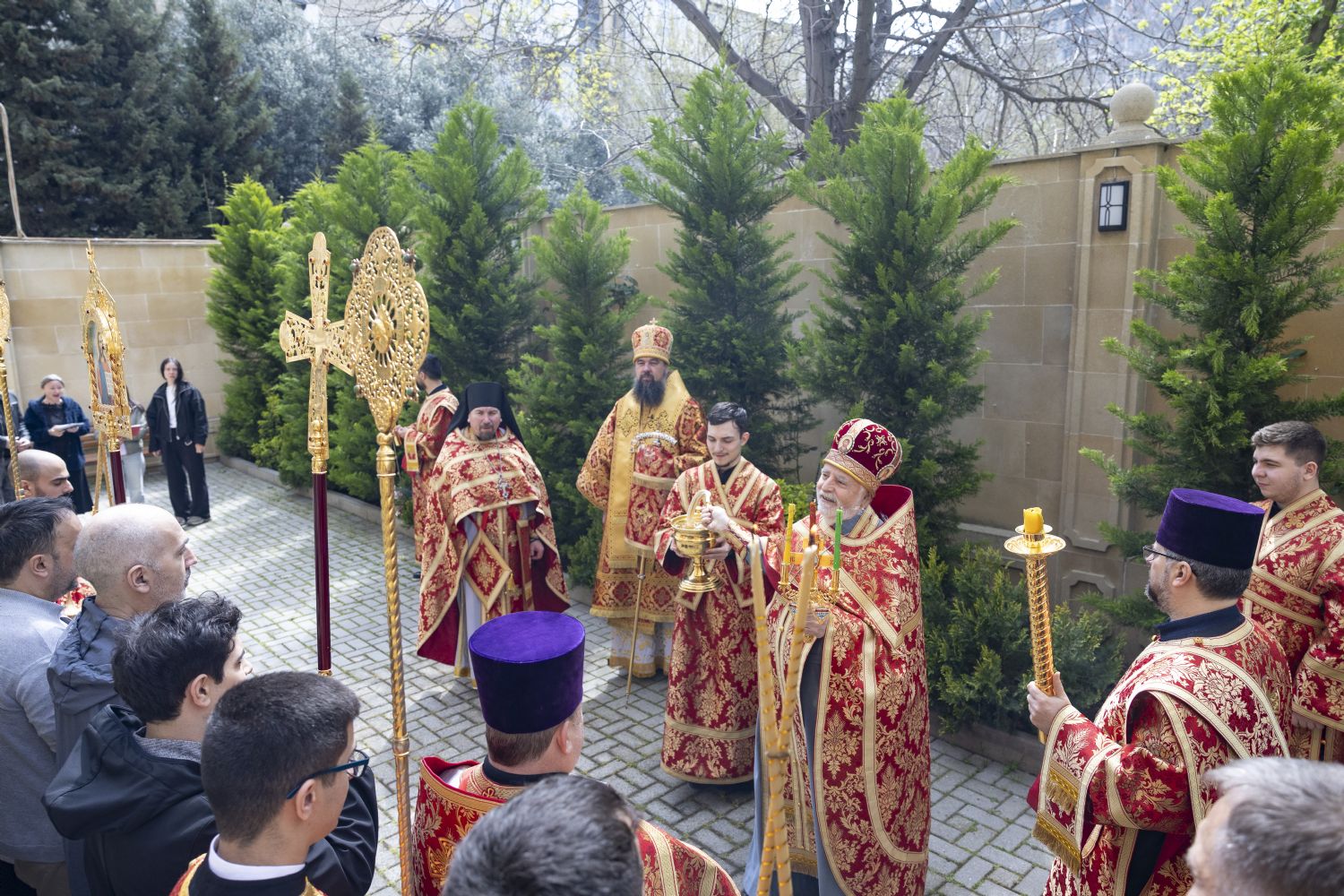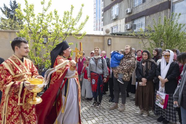 Pasxa həftəsinin şənbə günündə Bakı və Azərbaycan yepiskopu Aleksiy Bakı şəhəri Müqəddəs Mürr-Daşıyan Zənənlər kafedral kilsəsində İlahi Liturgiyaya başçılıq edib. Arxiyereyi kafedral kilsənin ruhaniləri