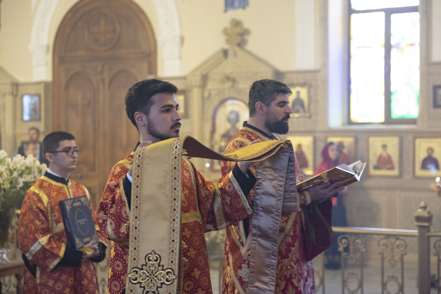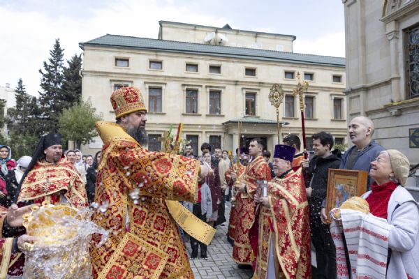 Pasxa həftəsinin cümə axşamı günündə Bakı və Azərbaycan yepiskopu Alexiy Bakı şəhəri Müqəddəs Mürr-Daşıyan Zənənlər kafedral kilsəsində İlahi Liturgiya keçiribr. Arxiyereyi kilsənin ruhaniləri və Tehran (İran)