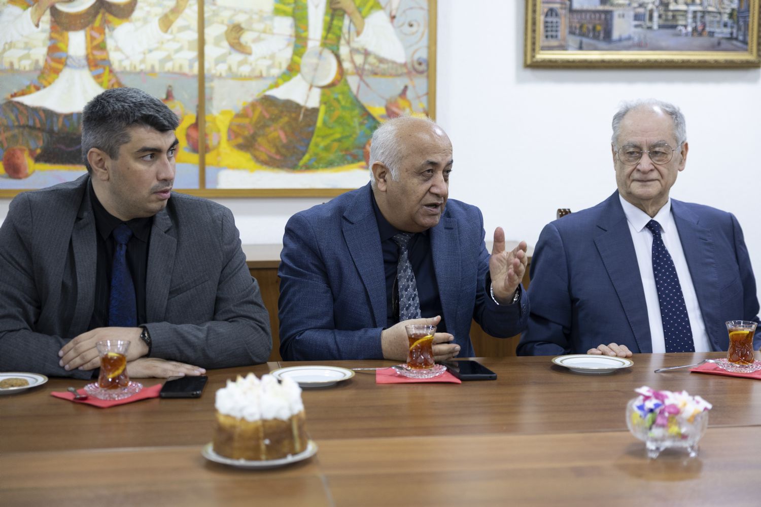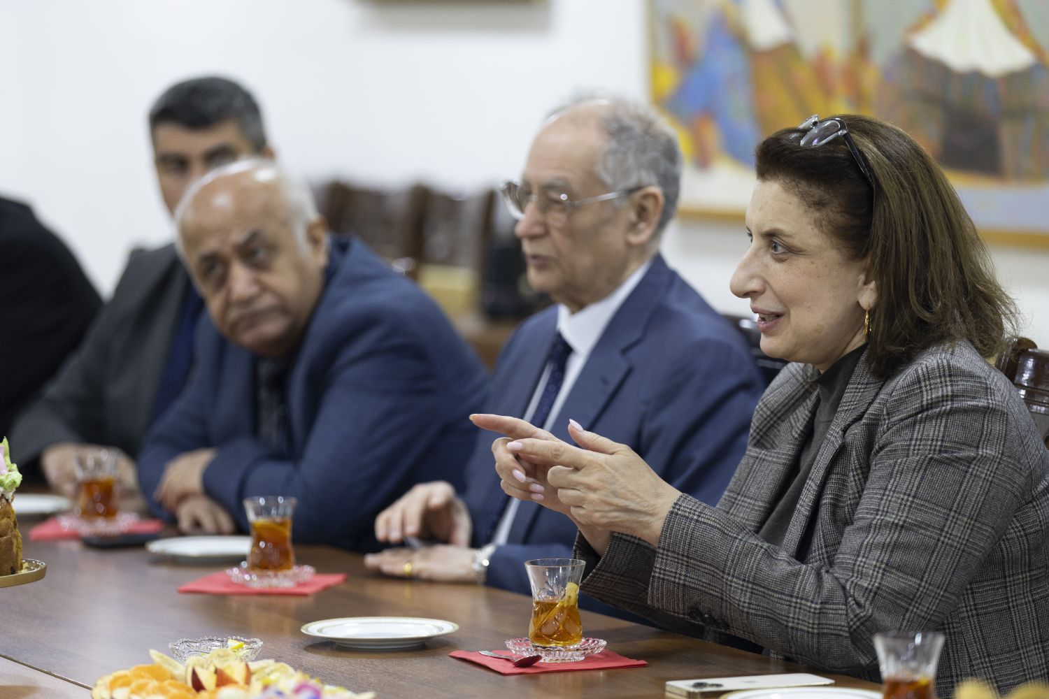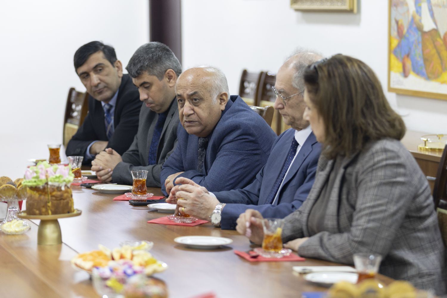 Tanışlıq dini-mədəni mərkəzin ziyafət zalında çay süfrəsi arxasında davam edən maraqlı və maarifləndirici söhbətlə davam etdi. Söhbət zamanı Azərbaycanın xristian irsi və tarixi, həmçinin mədəniyyətşünaslıq və incəsənət məsələləri müzakirə olunub.