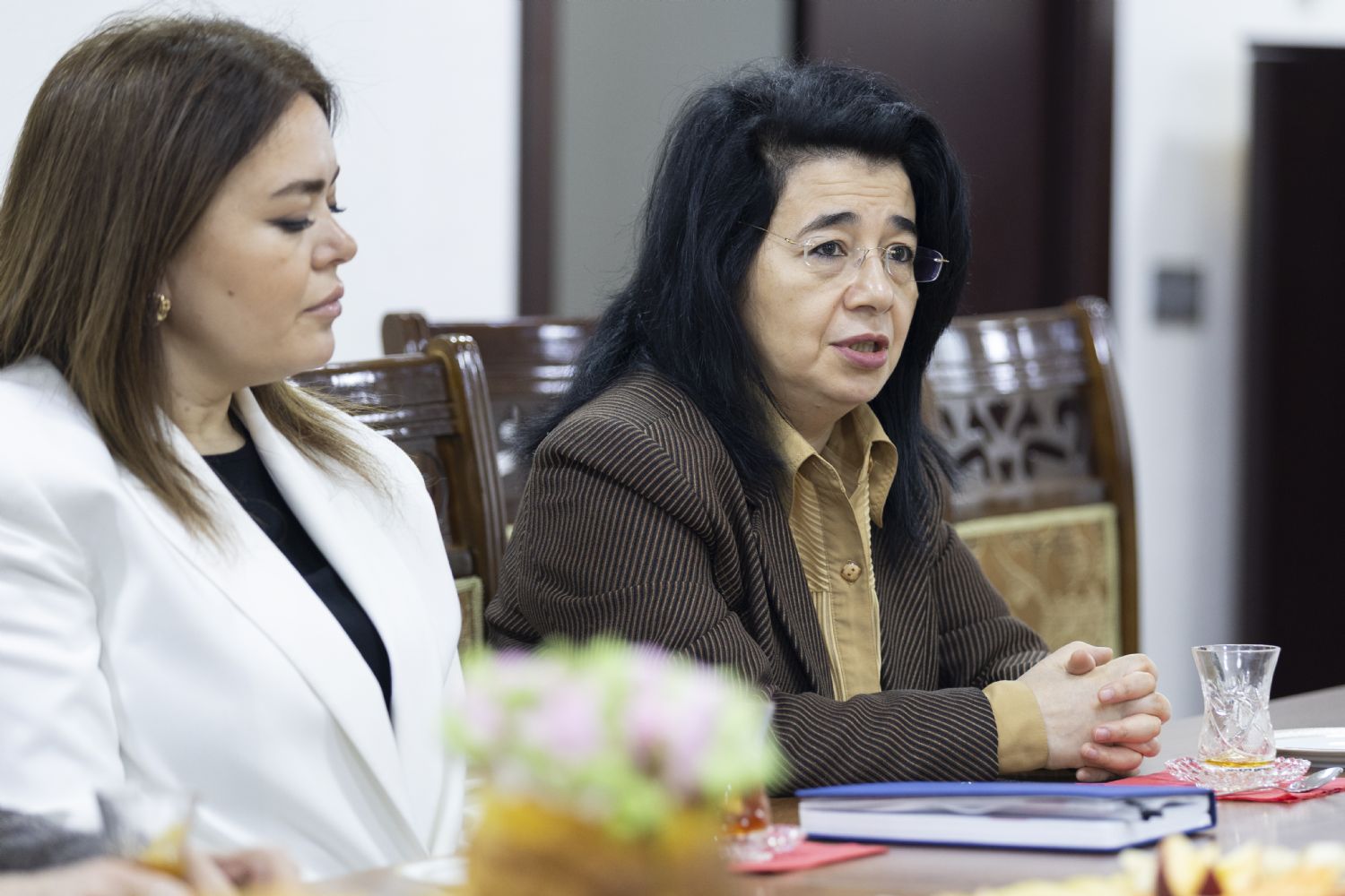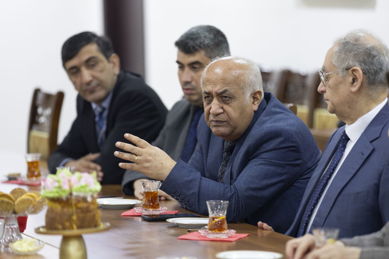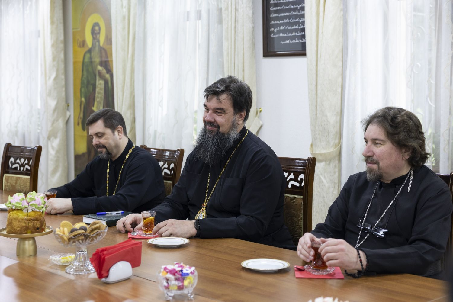 Tanışlıq dini-mədəni mərkəzin ziyafət zalında çay süfrəsi arxasında davam edən maraqlı və maarifləndirici söhbətlə davam etdi. Söhbət zamanı Azərbaycanın xristian irsi və tarixi, həmçinin mədəniyyətşünaslıq və incəsənət məsələləri müzakirə olunub.